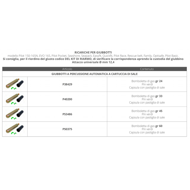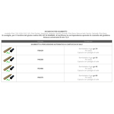 | P40200 | RICARICA EVO/PILOT 165 N AUT. | 26,88 € | ● 19 pz. |