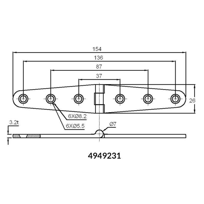 4949231 CERNIERA INOX MM.154X36 GRANDE 3 FORI 3,2 MM 8936643 14,45 € 169 pz.