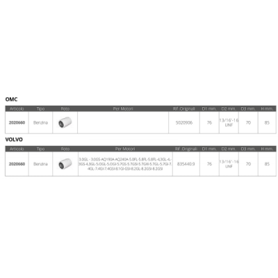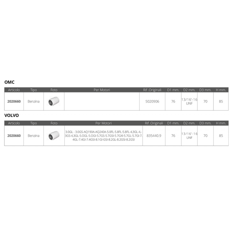 | 2020660 | FILTRO BENZINA OMC VOLVO | 85 MM | 76 MM | 13/16 - 16 UNF | 70 MM | 20,99 € | ● 33 pz. |