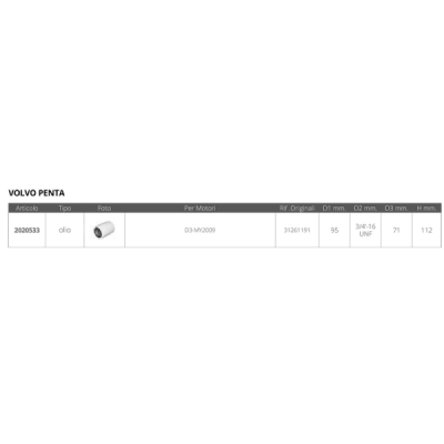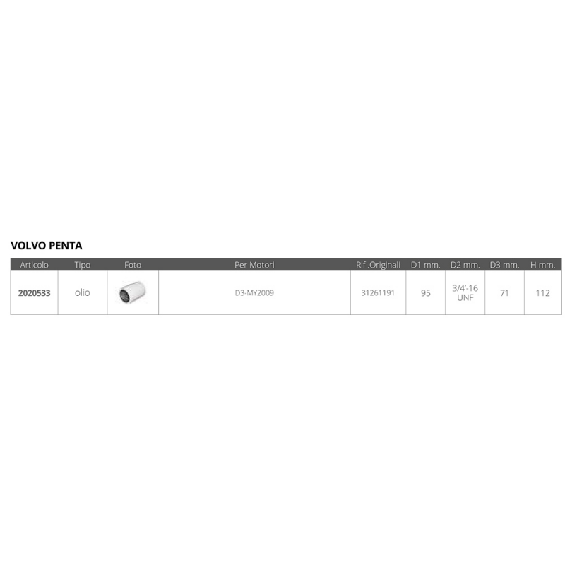 | 2020533 | FILTRO OLIO ONAN | 96 MM | 95 MM | 3/4 - 16 UNF | 71 MM | 9,25 € | ● 7 pz. |